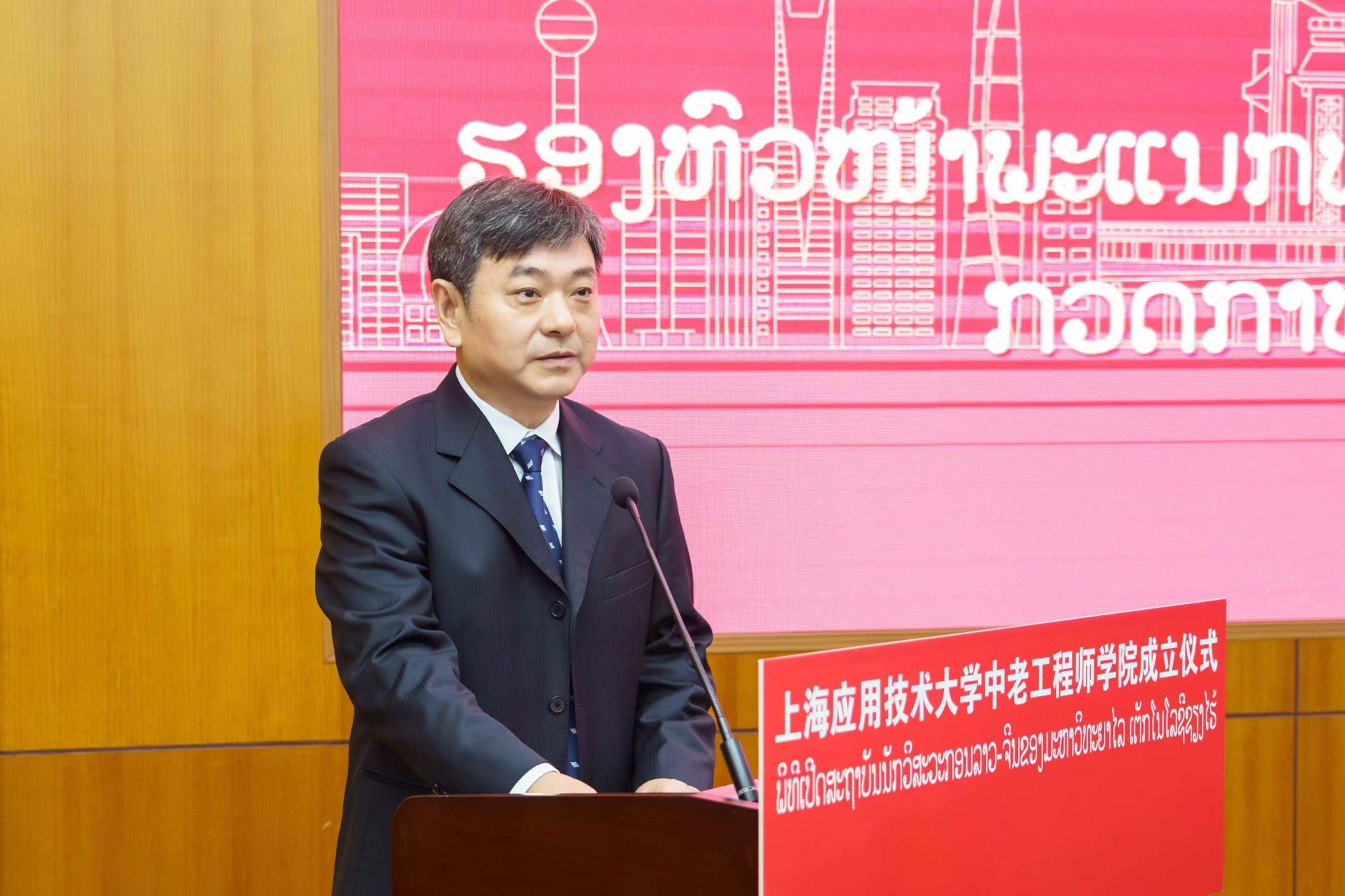9月25日上午,国产乱码久久久久久红粉影视中老工程师学院成立仪式在奉贤校区举行。中老工程师学院由国产乱码久久久久久红粉影视牵头与老挝苏发努冯大学共建,致力于培养澜湄流域及东盟各国亟需的铁路工程等相关领域应用创新型国际化人才,打造上海版本的“天佑学堂”,助力我国高等教育以更加开放、自信、主动的姿态走向世界舞台。