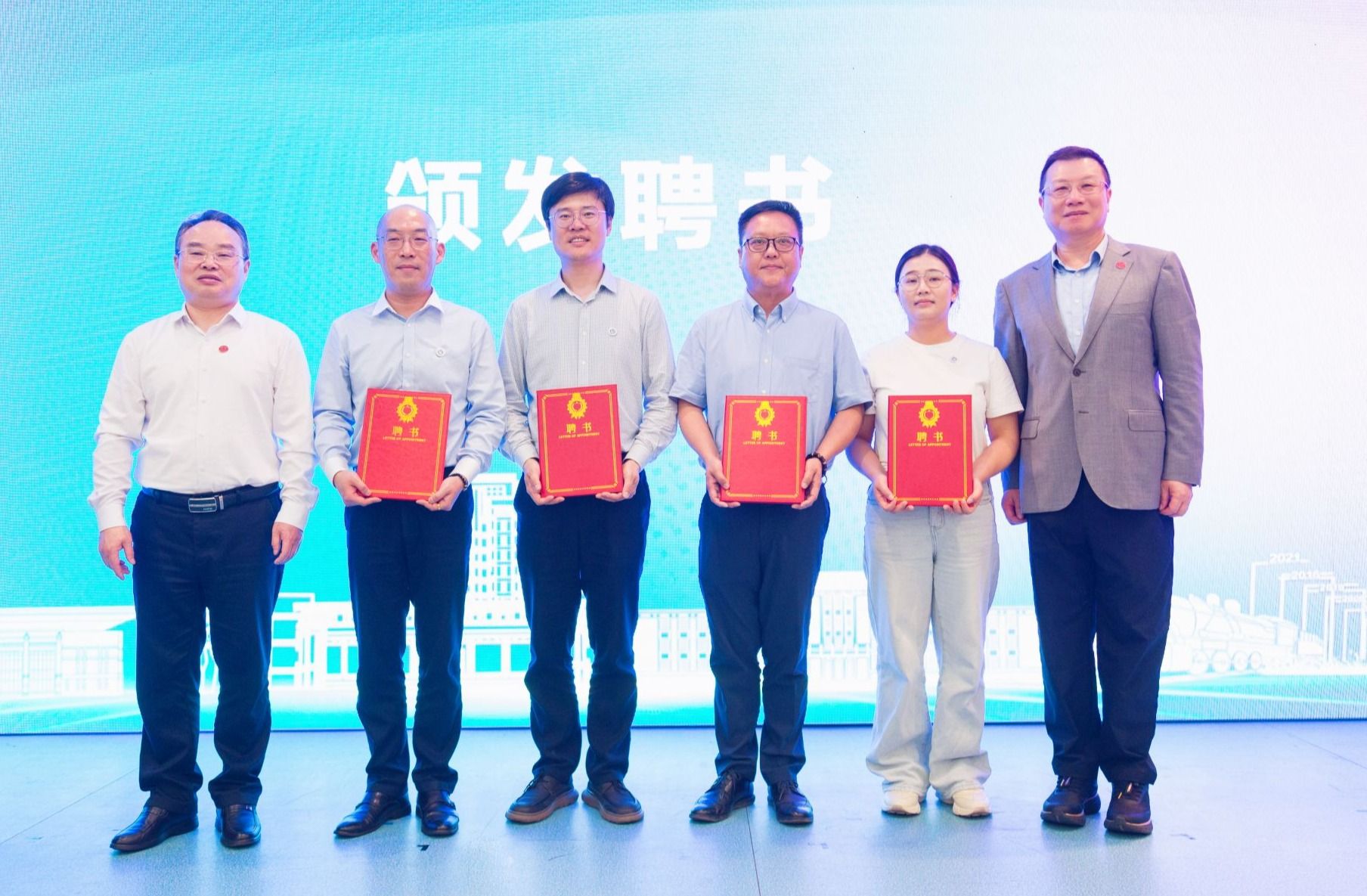 郭庆松、汪小帆共同为行业校友会名誉会长、会长、副会长、秘书长以及理事们颁发聘书。