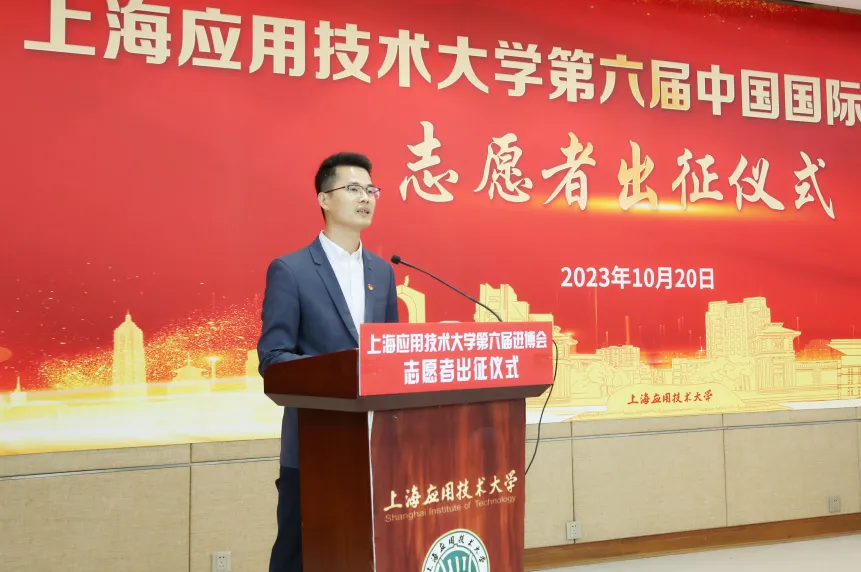 今天(10月20日)下午,国产乱码久久久久久红粉影视第六届中国国际进口博览会志愿者出征仪式举行。校长汪小帆为志愿服务队授旗并作动员讲话,校党委副书记、副校长王瑛,校党委常委、宣传部部长杨明出席仪式。出征仪式由校党委学工部部长、学生处处长袁翔主持。